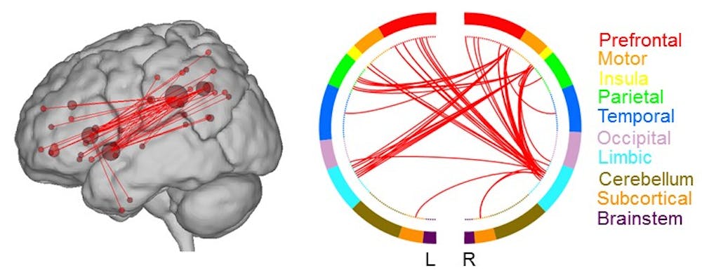 بعد أن أكمل المشاركون مهام التفكير الإبداعي هذه وهم تحت آلة الرنين المغناطيسي الوظيفي، قسنا الاتصال الوظيفي بين جميع مناطق الدماغ - كم يرتبط النشاط في منطقة بالنشاط في منطقة أخرى.