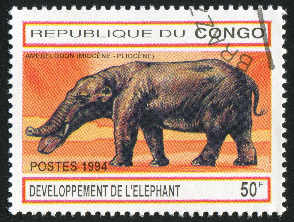 طابع بريدي طبع في الكونغو يُبين أسلاف الفيل