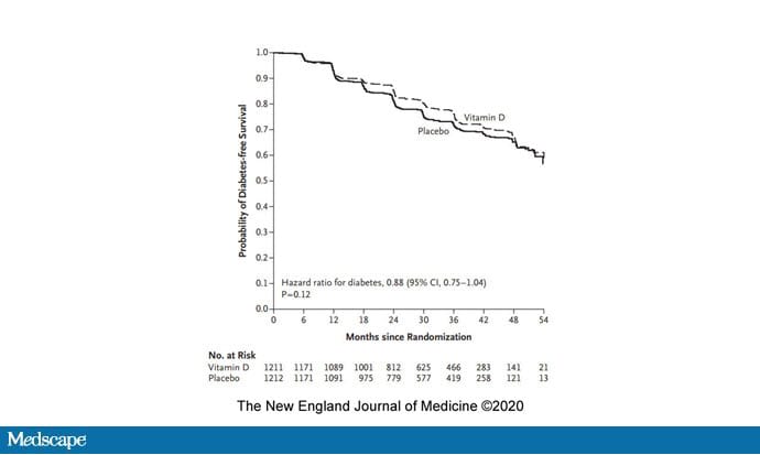 أشارت الدراسات الرصدية الى أن انخفاض مستويات فيتامين د مرتبط بظهور مرض السكري. ثم قمنا بإجراء تجربة على 2400 مريض يعانون من مقدمات السكري (10). ووجدنا أنه لم يكن لمكملات فيتامين د أي تأثير.