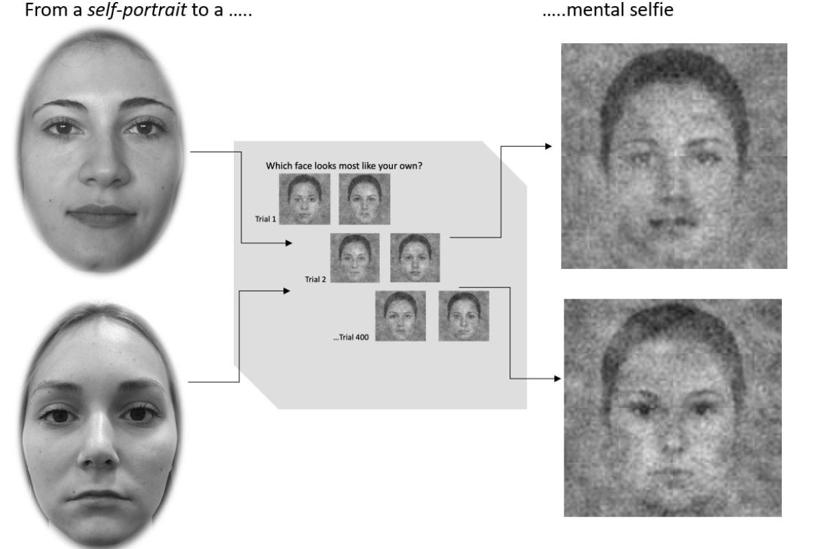 في البحث الذي أجراه الفريق، عُملت محاكاة لصور المشاركين الذهنية لوجوههم باستخدام تقنية حوسبية تم استخدامها سابقًا لمساعدة باحثي علم النفس على تصور كيف نرى الأشياء عقليًا / ذهنيًا. لعمل صورة سيلفي ذهنية، رأى كل مشارك وجهين اعتباطيين / عشوائيين، وفي كل مرة يتعين على كل منهم اختيار وجه يشبه وجهه، تكررت العملية عدة مئات من المرات. في النهاية، تمكن الباحثون من ايجاد متوسط كل الصور التي اعتقد الناس أنها تشبه وجوههم بشكل أكثر، وهذا ساعد الباحثين علي تصور "صور السيلفي الذهنية" للمشاركين.